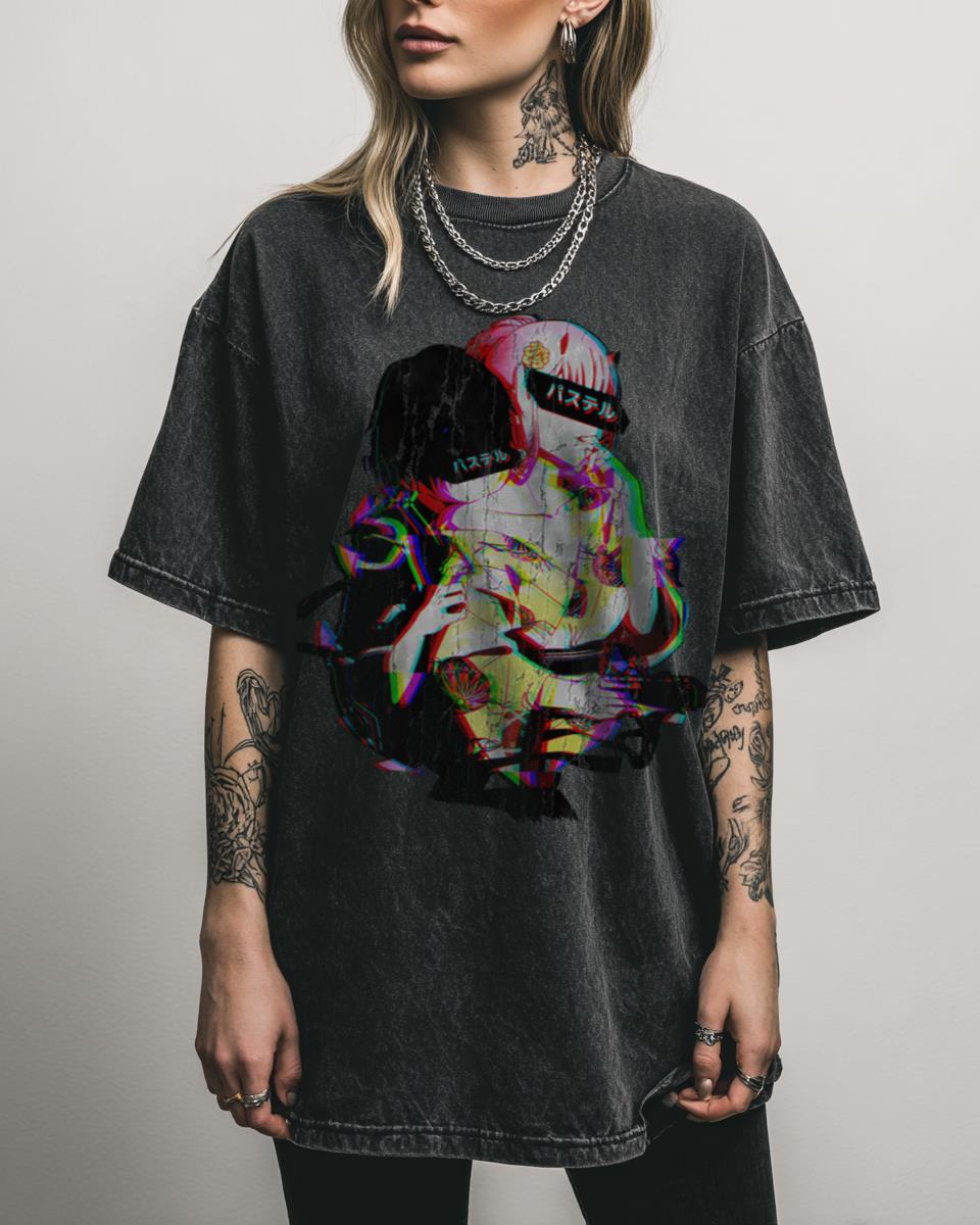 Are you captivated by the iconic Zero Two and the cyberpunk aesthetic of Darling in the Franxx? Embrace ‘ETERNITY’ with this stunning graphic tee, featuring an aesthetic cyberpunk design inspired by Darling in the Franxx! This shirt beautifully captures the essence of Zero Two (002), the beloved waifu, and the futuristic world of the Franxx….