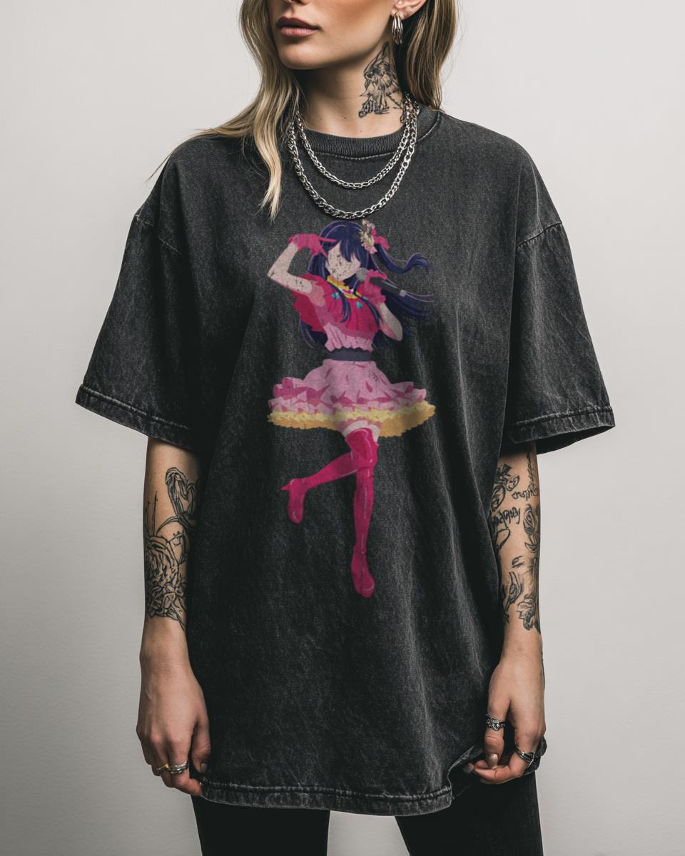 Are you captivated by the dazzling star of Oshi No Ko? Celebrate the radiant idol Ai Hoshino with this striking graphic tee from the acclaimed anime and manga series, Oshi No Ko. This design captures Ai’s charismatic presence, making it perfect for fans of the show and lovers of idol anime. Show your admiration for…