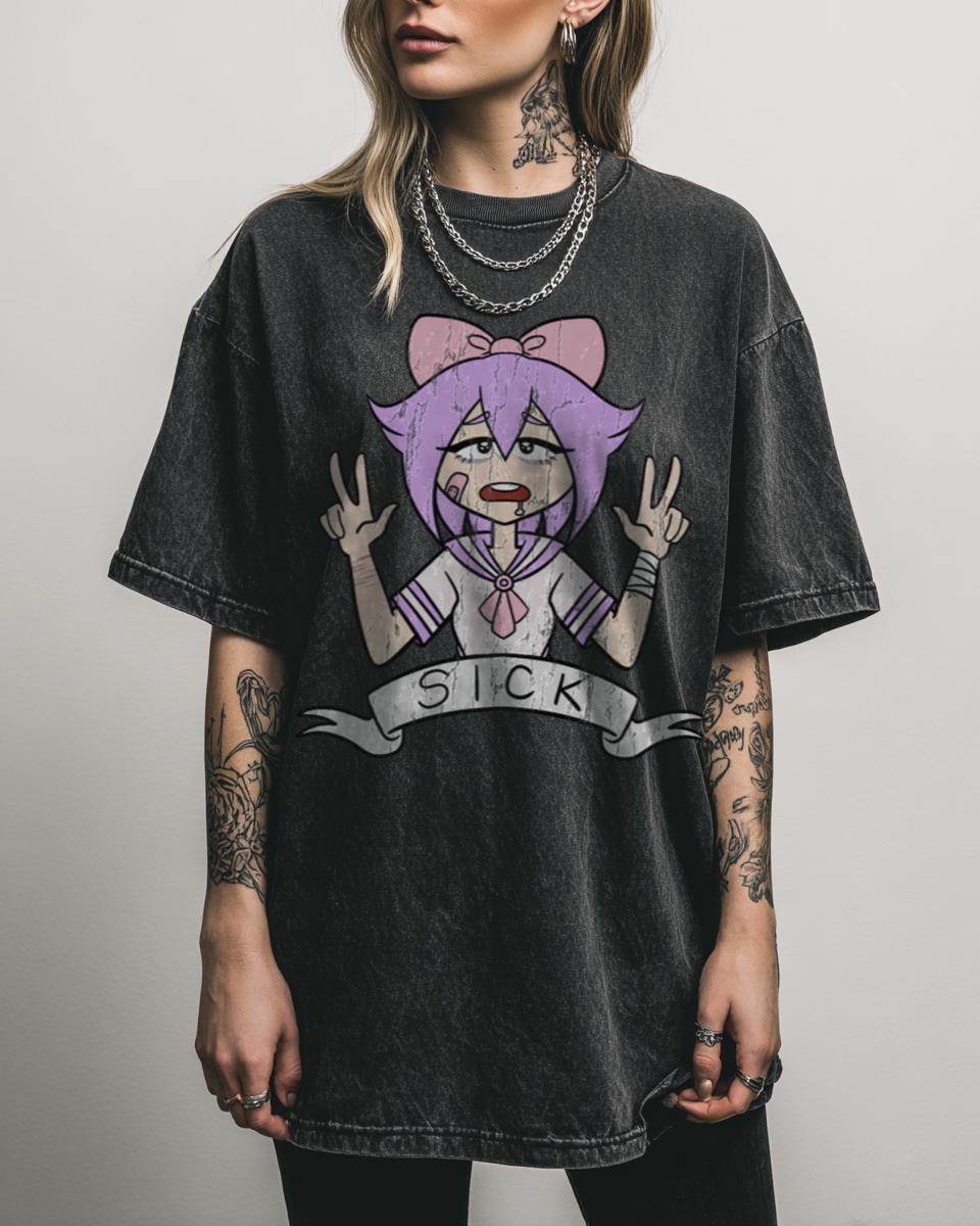 Looking for a unique, edgy, and conversation-starting anime tee? Dare to be different with this “vomit tastes sweet” graphic tee, featuring a distinct anime girl design with a Tokyo aesthetic. This piece blends kawaii charm with a touch of dark, ironic humor, making it a bold statement for fans of Japanese art, alternative anime styles,…