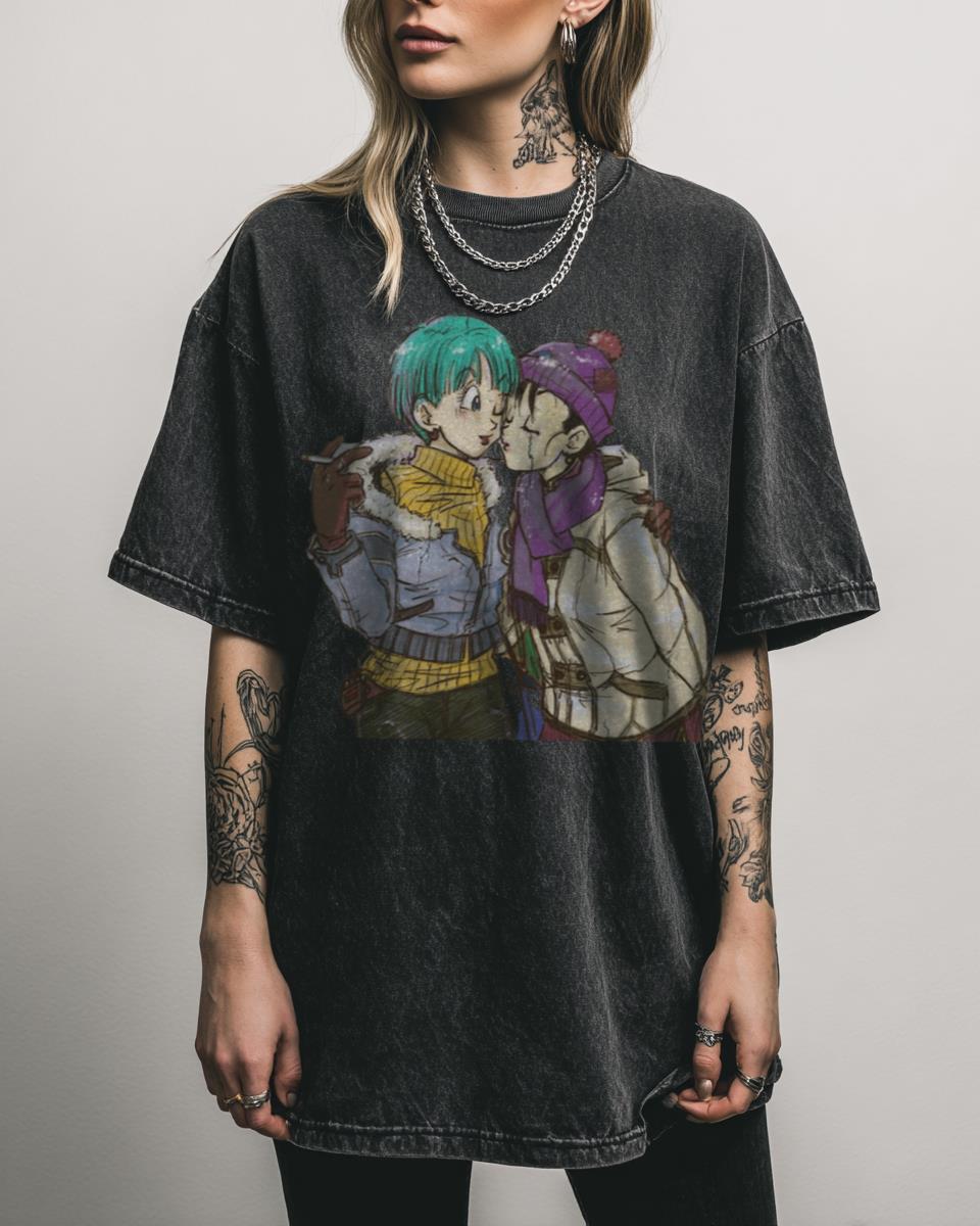Do you adore the cute and iconic female characters of Dragonball? Show your love for Dragonball’s charming duo with this delightful Black Acidwash T-Shirt featuring Bulma and Chichi. This kawaii-style design captures the playful and spirited nature of these beloved ‘waifus,’ making it an irresistible choice for any anime fan. Why You’ll Love This: Vibrant,…