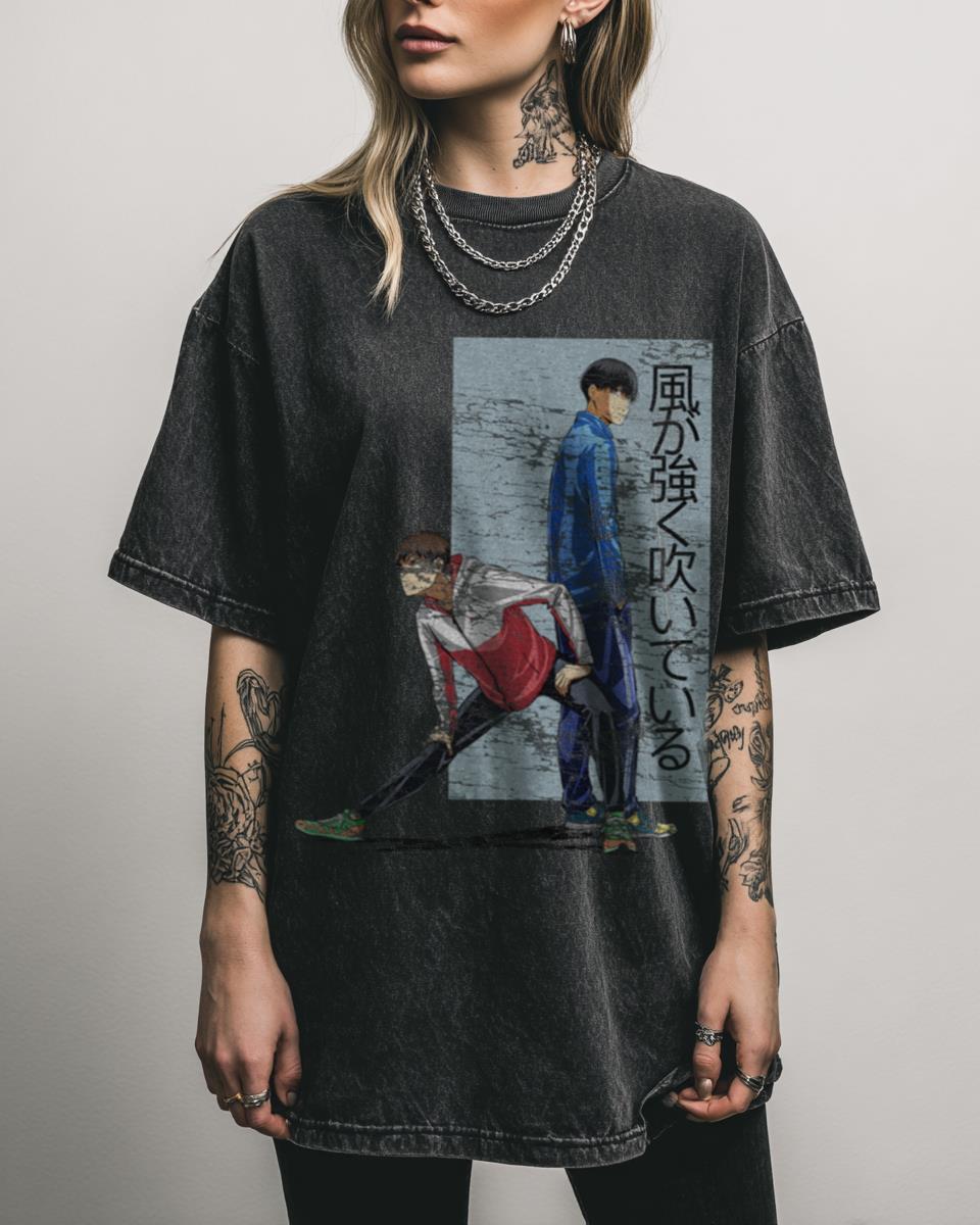 What makes this Run with the Wind T-Shirt a must-have for fans? Celebrate your passion for Run with the Wind (Kaze ga Tsuyoku Fuiteiru) with this dynamic Kakeru and Haiji T-shirt. Featuring a unique graphic on a black acidwash tee, this 100% cotton shirt is perfect for fans of sport anime, manga, and the inspiring…