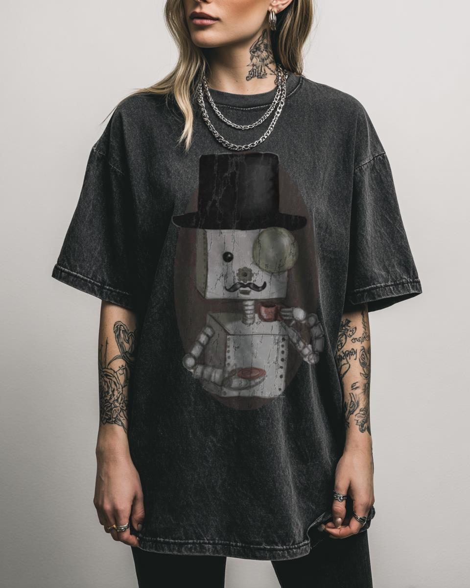 Do you have a soft spot for dapper robots and steampunk charm? Meet your new favorite companion: the ‘Gentleman Bot’ T-Shirt! This adorable design features a whimsical robot sporting a top hat and enjoying a cup of tea, perfectly blending steampunk aesthetics with Victorian elegance. A delightful piece for fans of fantasy, sci-fi, and charming…