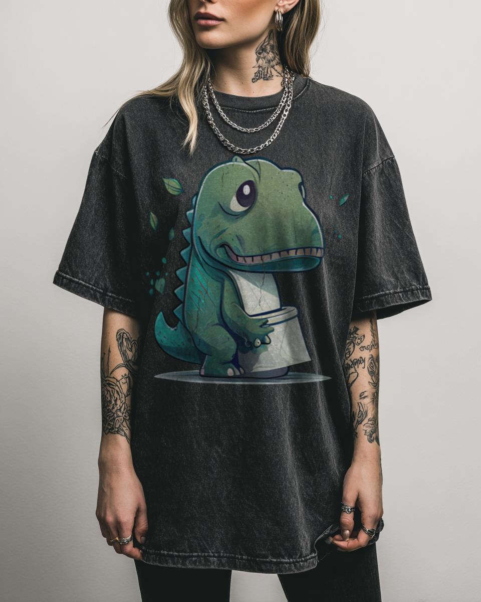 Ever wondered about the daily struggles of a T-Rex, especially in the bathroom? Get ready for some prehistoric laughs with this hilarious ‘T-Rex in the Bathroom’ graphic! This absurd and funny design humorously depicts a T-Rex struggling with toilet paper, highlighting its famously short arms. It’s a silly, cute, and instantly relatable joke for anyone…