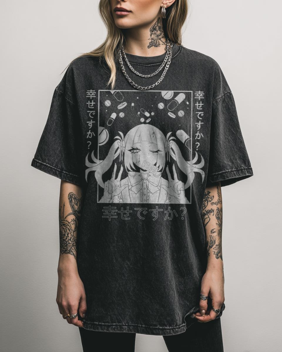 Exploring the unique aesthetics of Japanese Harajuku fashion? Dive into the captivating world of Jirai-Kei (Landmine-Style) fashion with this graphic tee featuring “Yuki,” an anime girl embodying the creepycute, darkgirly aesthetic. With the poignant question “Shiawase desu ka?” (Are you happy?), this design touches on themes of mental health and self-expression, perfect for fans of…