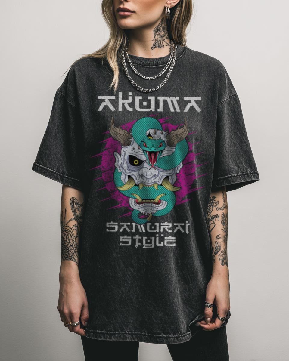 Ready to unleash a bold statement with a blend of Japanese tradition and urban edge? This striking “Pink Akuma Snake Oni Rising Sun Logo” design fuses the fierce imagery of a Japanese Akuma (demon) and Oni mask with a powerful snake and Rising Sun motif. Rendered in a grunge, graffiti-inspired style with Kanji elements, it’s…
