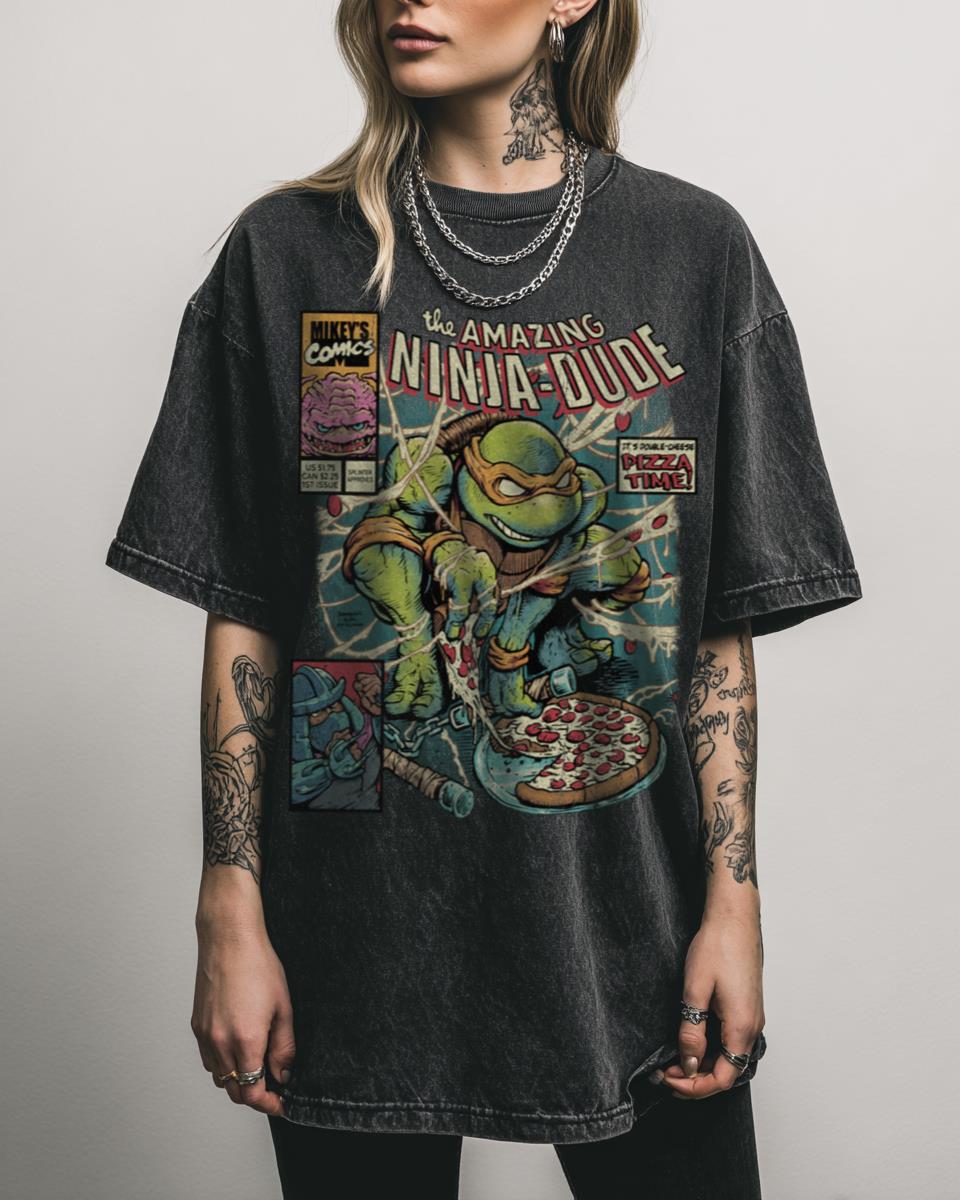 Feeling nostalgic for classic 80s cartoons and pizza-loving heroes? Step back in time with ‘The Amazing Ninja Dude’ T-shirt, a fantastic tribute to 80s nostalgia and our favorite crime-fighting turtles. This retro design captures the essence of classic cartoon crossovers, featuring elements reminiscent of pizza, cheese, and iconic characters like Krang and Shredder. Why You’ll…