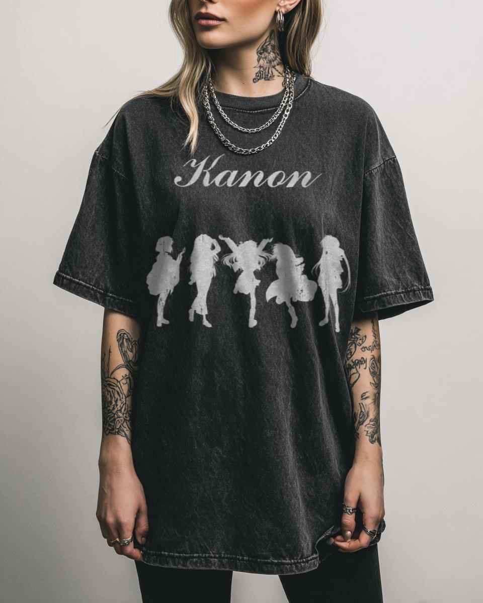 Are you a cherished fan of the heartwarming visual novel and anime, Kanon? Celebrate the iconic heroines with our ‘Kanon – Main Girls (Black Version)’ T-Shirt! This minimalist design features the beloved main girls of Kanon 2006, including Tsukimiya Ayu, Minase Nayuki, Misaka Shiori, Kawasumi Mai, and Kurata Sayuri, alongside Aizawa Yuuichi. It’s perfect for…