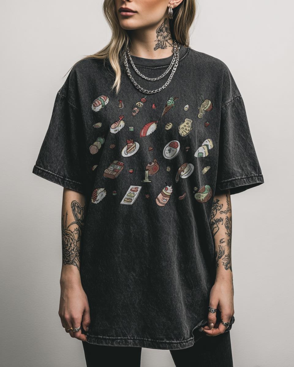 Do you have a passion for delicious Japanese cuisine and adorable aesthetics? This delightful ‘Japanese Food and Snacks Pattern’ graphic tee is a feast for the eyes! Featuring a kawaii array of sushi, ramen, dango, taiyaki, and more, it’s a charming design that celebrates the vibrant culinary culture of Japan. Perfect for foodies and fans…