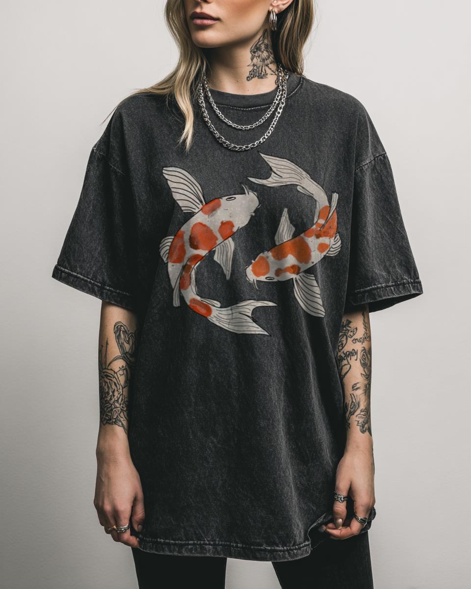 Are you drawn to the serene beauty of koi fish with a touch of modern edge? Embrace the subtle charm of aquatic life with our “Coy as a Koi” T-shirt! This elegant design features a beautiful koi fish, rendered with an edgy yet natural aesthetic, perhaps incorporating cream and orange tones reminiscent of VSCO art….