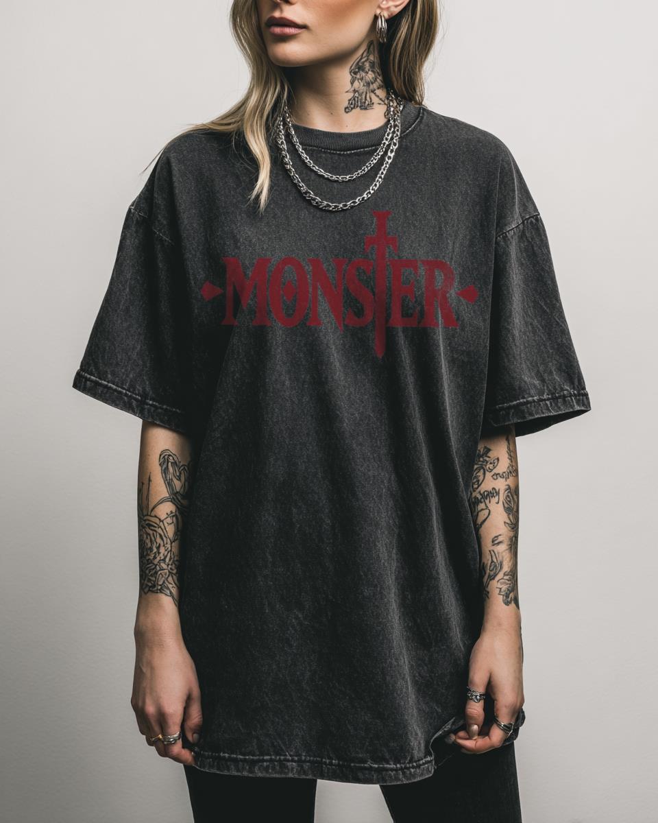 Wear a badge of psychological brilliance. Show your appreciation for one of the greatest psychological thrillers in anime and manga history with this ‘Monster Logo’ t-shirt. Featuring the iconic red title logo from Naoki Urasawa’s masterpiece, this design is a minimalist yet powerful statement for fans of deep storytelling, suspense, and morally complex narratives. It’s…