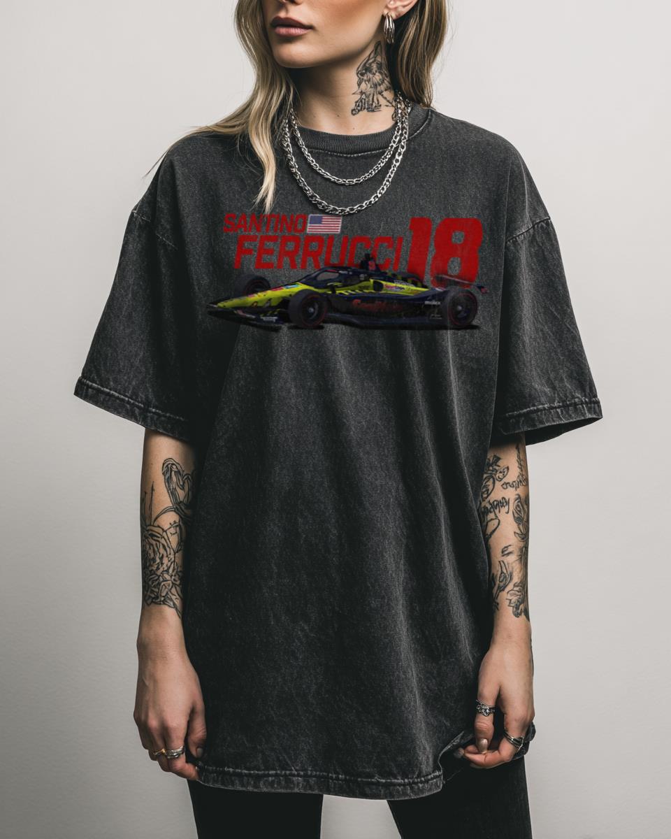 Cheering for American talent in the world of motorsports? Show your support for the dynamic American racer with this “Santino Ferrucci 2020” graphic tee. Featuring red text on a black background, this design celebrates the IndyCar driver and his passion for auto racing. Perfect for fans from Indiana, Indianapolis, and across the USA who follow…
