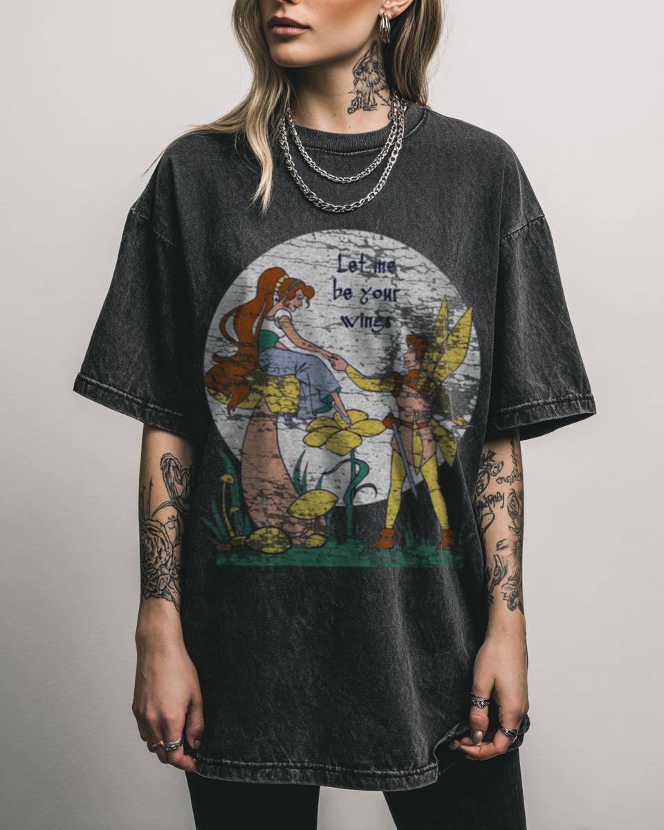Why Choose This Thumbelina “Let Me Be Your Wings” Tee? Flutter into a world of magic with this fan-inspired ‘Let Me Be Your Wings’ T-shirt, a charming tribute to the classic fairytale of Thumbelina. Featuring enchanting printed graphics on a stylish black acidwash background, this unisex tee is perfect for lovers of fantasy and animated…