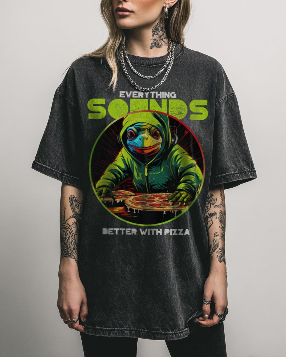 Do you believe the secret ingredient to any great beat is… pizza? This hilarious ‘Everything Sounds Better With Pizza’ design combines your love for electronic music and cheesy slices. Featuring a cartoon DJ with a pizza turntable, it’s a perfect meme-inspired tee for music producers, EDM fans, and anyone who thinks pizza makes everything better,…