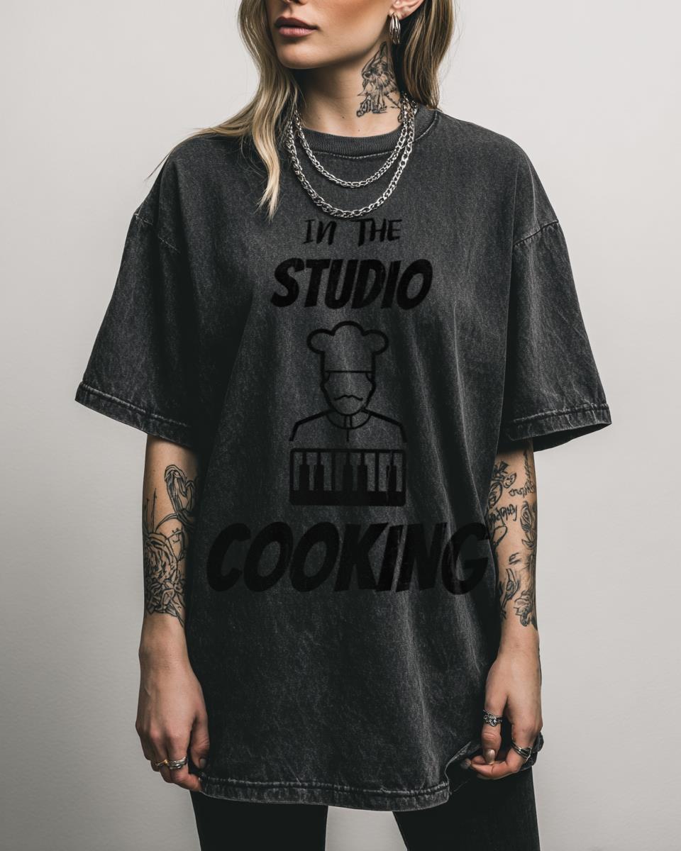 Are you a music producer, beat maker, or an artist constantly cooking up new tracks in the studio? Show off your creative process with this ‘In The Studio Cooking’ graphic T-shirt! Perfect for hip hop producers, electronic music artists, and anyone who spends their time crafting beats and instrumentals, this design celebrates the art of…