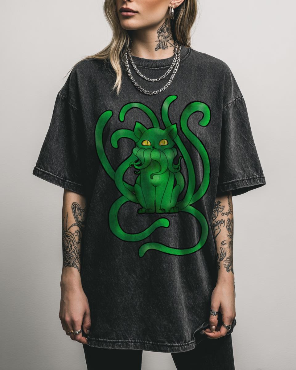 Are you a fan of cosmic horror, but with an adorable, feline twist? Prepare for cuteness and chaos with our “Cthulhu Kitty” T-shirt! This unique design features a charming “Catthulhu” or “Kittythulu” with golden eyes, blending the terrifying might of Lovecraft’s Elder Gods with the irresistible cuteness of a cat. It’s a purr-fectly whimsical piece…