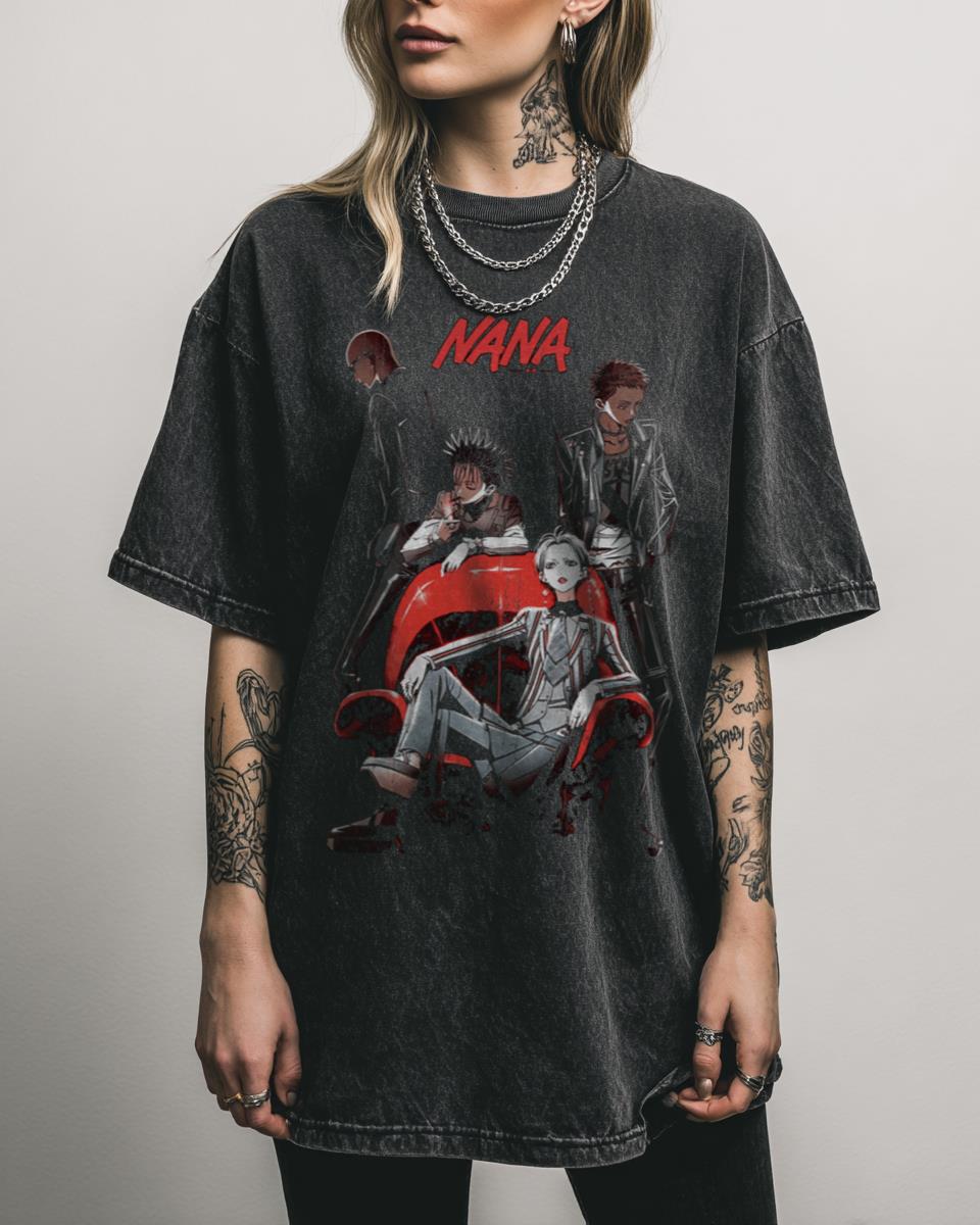 Why This Nana Anime Black Stones Band T-Shirt is a Fan Favorite? Channel your inner punk rock spirit with this Nana Anime Black Stones Band T-Shirt. Featuring a cool printed graphic inspired by Ai Yazawa’s iconic manga, this black acidwash tee is perfect for fans of Nana Osaki, Ren Honjo, and the legendary Black Stones…
