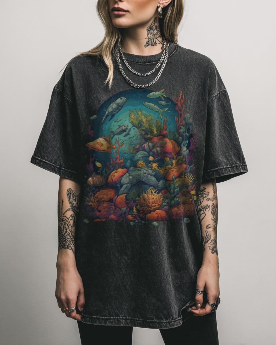 Dive into the beauty of the ocean with this enchanting ‘Underwater Life’ T-shirt! Featuring a charming octopus and various marine fish amidst a vibrant blue sea, this design captures the serene and mysterious allure of the underwater world. It’s a perfect piece for ocean lovers, divers, and anyone fascinated by marine nature and its creatures….