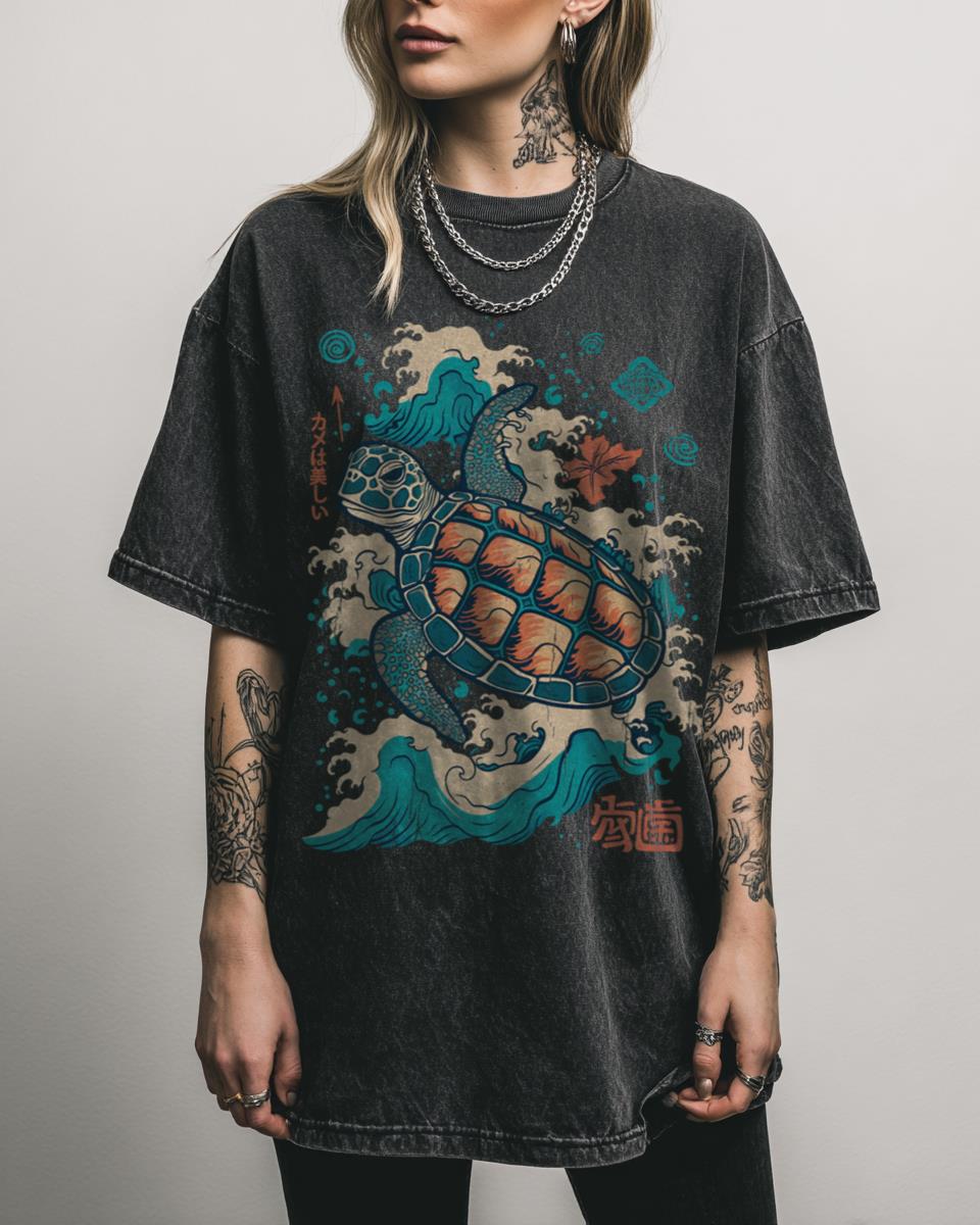 Do you appreciate classic Japanese art and the majestic creatures of the sea? Dive into the beauty of traditional Japanese art with this “Japanese Turtle” graphic tee. Inspired by Ukiyo-e and the iconic Great Wave of Kanagawa, this design elegantly portrays a turtle amidst natural elements, perfect for art lovers and enthusiasts of Eastern nature….