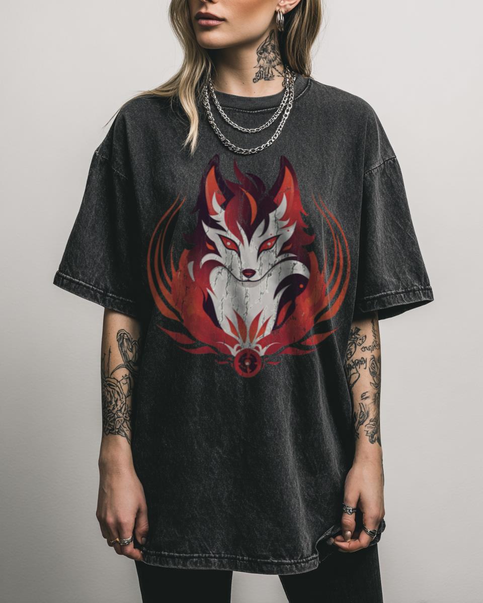 Embrace the majestic spirit of the Okami wolf? Unleash your inner deity with this stunning graphic tee featuring a wolf in the distinctive Okami style, surrounded by vibrant fire and Japanese elements. This design captures the beauty and power of nature and Japanese folklore, perfect for fans of the Okami video game, anime, and mystical…