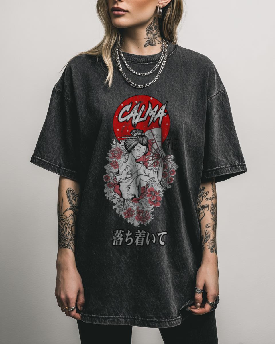 What Makes This Calma Japanese Style T-Shirt a Serene Choice? Embrace tranquility and beauty with this exquisite Calma Japanese Style T-Shirt, featuring a delicate design of a geisha and elegant flowers. This fan-inspired graphic tee, in a distinctive black acidwash, is perfect for those who appreciate traditional Japanese art and a serene aesthetic. Features That…