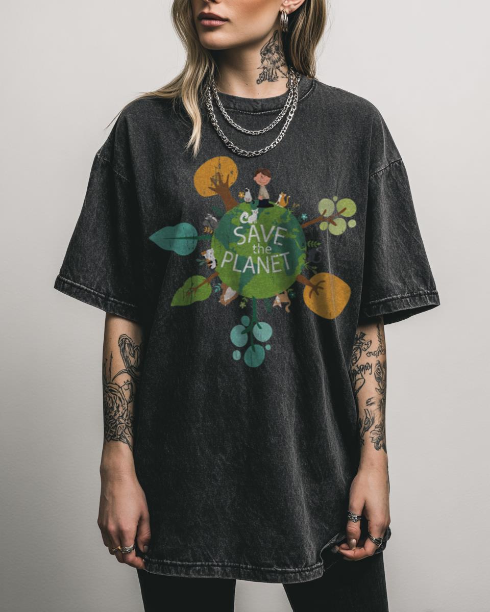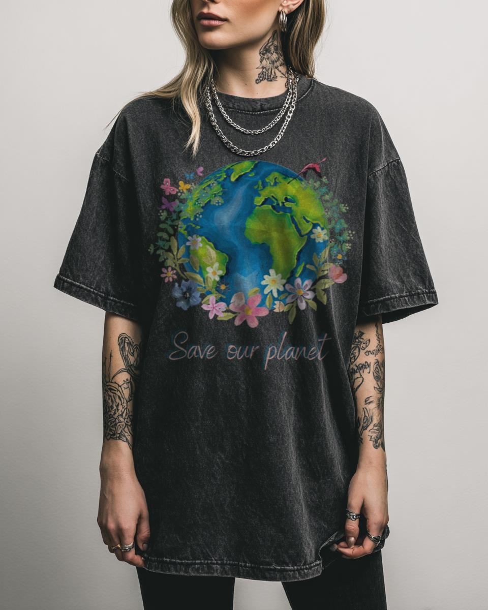 Ready to wear your commitment to a greener future? Embrace the spirit of environmental awareness with this charming ‘Save the Planet’ acidwash T-shirt. Featuring a delightful eco-cartoon graphic of a bird nestled amidst vibrant flora, this design beautifully encapsulates the message of Earth Day and the importance of ecology. It’s a gentle yet powerful statement…