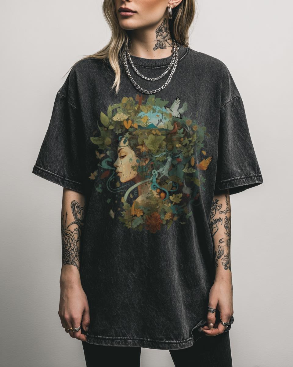 Seeking a peaceful escape in your wardrobe? Immerse yourself in tranquility with this captivating T-shirt featuring a serene girl amidst lush green plants, gracefully accompanied by a delicate butterfly. This nature-inspired design evokes a sense of quiet reverie and oxygen-rich calm, perfect for anyone who cherishes the beauty of the natural world. Why You’ll Love…