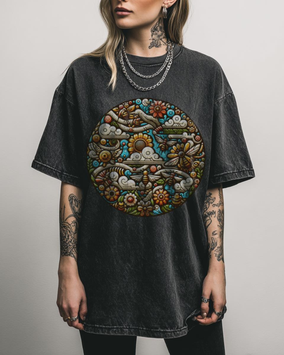 What Makes This Floral Bee “Among Branches & Flowers” T-Shirt Unique? Immerse yourself in nature’s artistry with this Maximalist Floral Bee Art T-shirt, featuring a vibrant “Among the Branches and Flowers” design. This colorful, artistic graphic on a black acidwash tee is perfect for those who love intricate botanical patterns and buzzing honeybees. Why This…