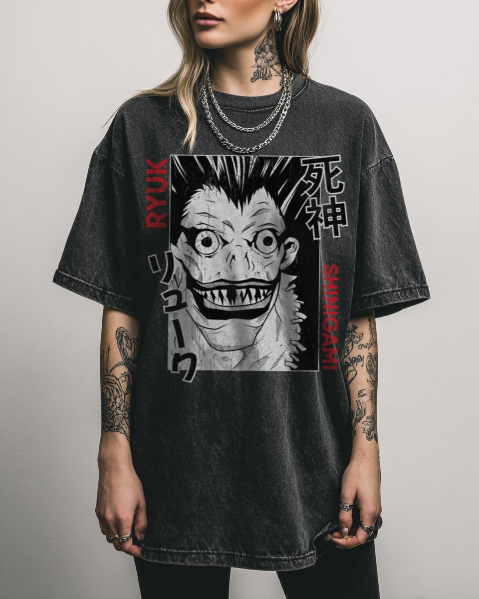 Fascinated by the dark world of Death Note? Embrace the power of the Death Note with ‘The Shinigami’ T-shirt, featuring the iconic Ryuk! This design pays tribute to the popular anime and manga series, perfect for fans of Light Yagami and Misa Amane. It’s a must-have for anyone who appreciates the psychological thriller and supernatural…