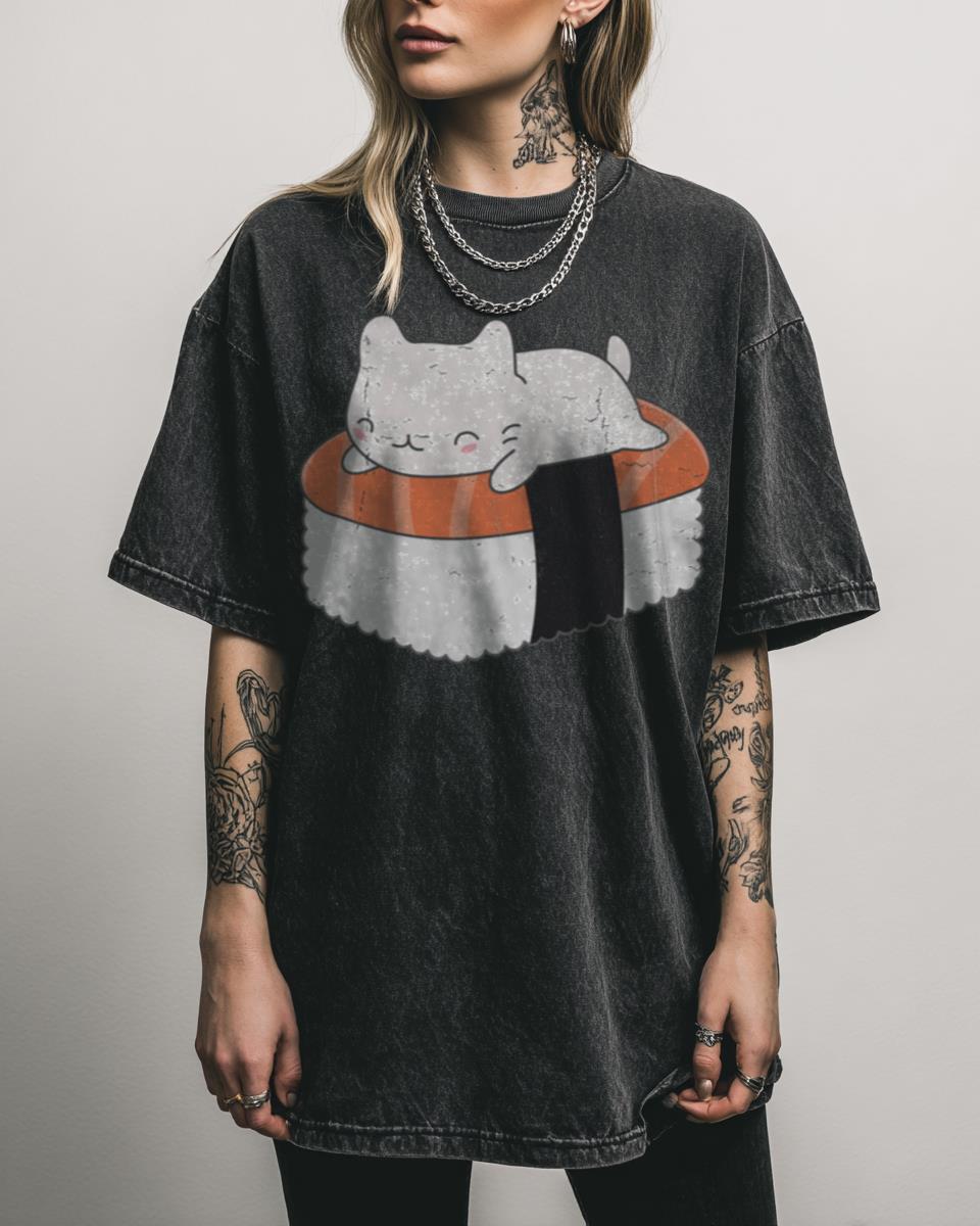 Are you a cat lover with a taste for adorable Japanese cuisine? Feast your eyes on this charming Kawaii Sushi Cat T-shirt! This delightful design features a cute kitten playfully transformed into a sushi roll, blending your love for feline friends with the irresistible charm of Japanese food art. It’s the purr-fect blend of geeky…