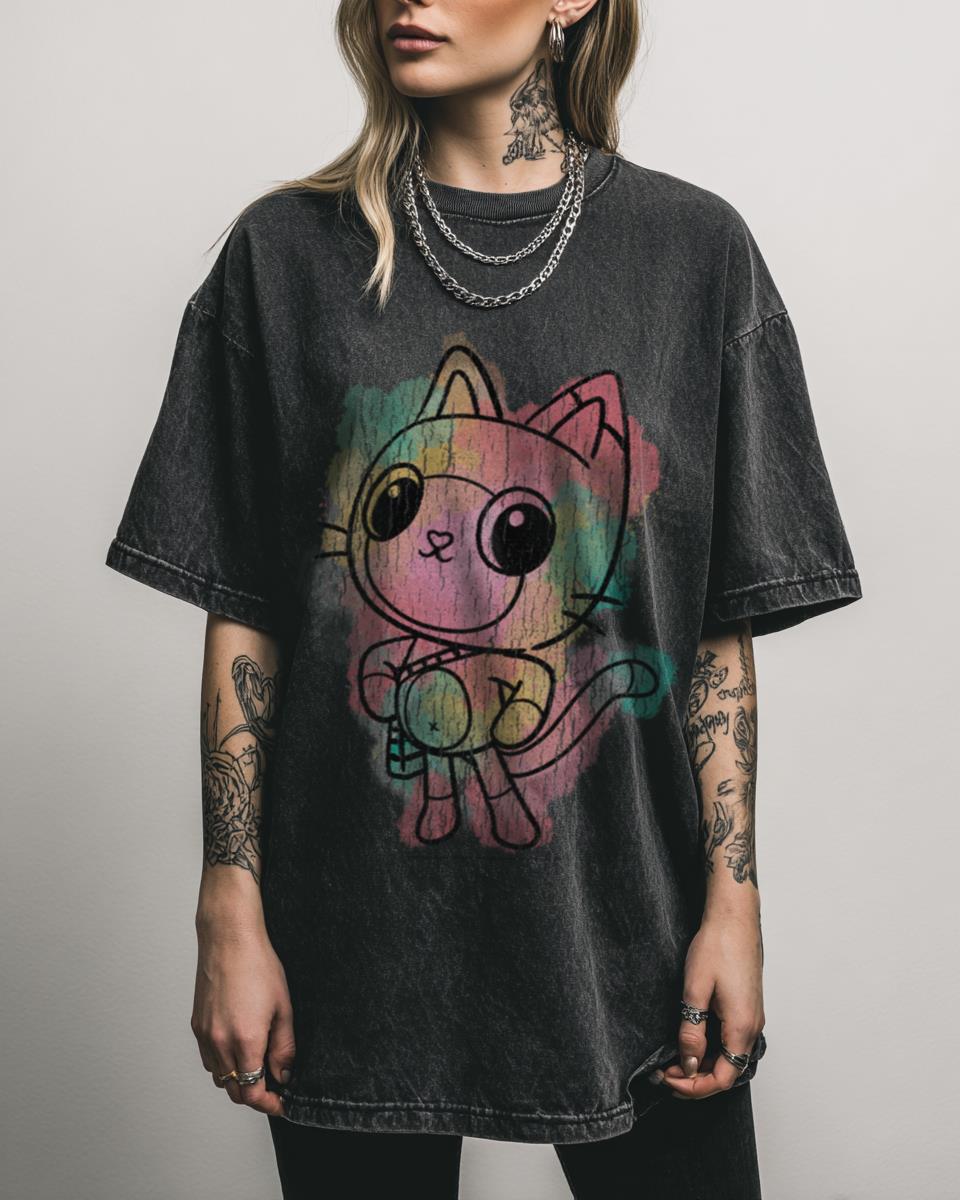 What Makes This Gabby’s Dollhouse Pandy Paws T-Shirt So Charming? Bring the magic of the dollhouse to life with this Gabby’s Dollhouse Pandy Paws watercolor kids T-shirt. Featuring a delightful fan-inspired sketch of Pandy Paws, this black acidwash tee is crafted from 100% heavyweight cotton for comfort and playful style. Key Features for Little Fans:…