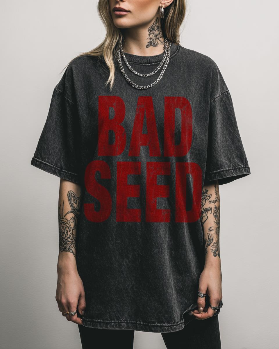 Discover Your Next Favorite Nick Cave & The Bad Seeds Tee! Channel the enigmatic spirit of **Nick Cave & The Bad Seeds** with this compelling ‘Bad Seed’ graphic tee. Featuring a unique black acidwash finish, this fan-inspired design is a subtle yet powerful tribute to the legendary artist, perfect for those who appreciate his profound…