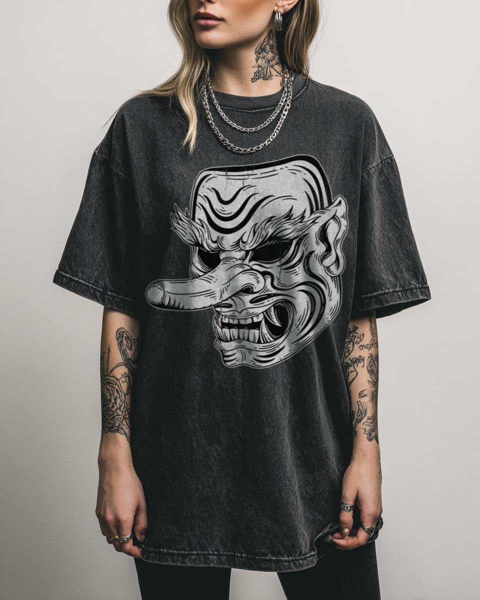 Are you captivated by the rich mythology and dark aesthetics of Japanese folklore and art? Embrace the mystique of ancient Japan with this striking design featuring a Tengu Mask, blended with elements of a demon skull and samurai warrior imagery. This dark art piece draws inspiration from traditional Japanese tattoos and horror aesthetics, creating a…