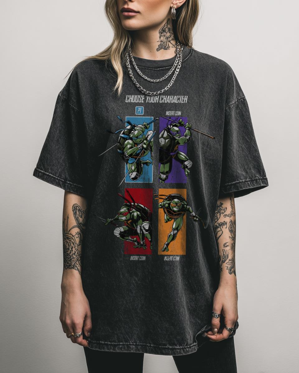 Ready to unleash some Turtle Power and relive your favorite 90s cartoon memories? Cowabunga! Grab this classic TMNT Ninja Turtles graphic tee and join Leonardo, Donatello, Michelangelo, and Raphael in their fight against evil. This design celebrates the iconic heroes in a half shell, perfect for fans of the beloved cartoon, comics, and movies who…