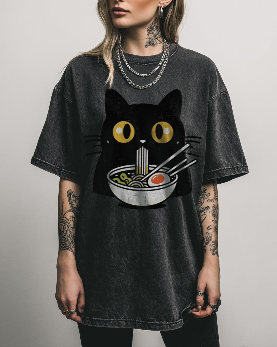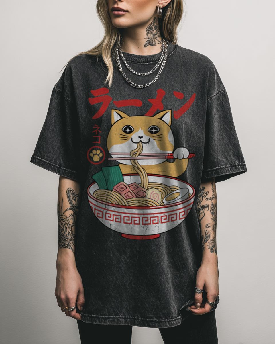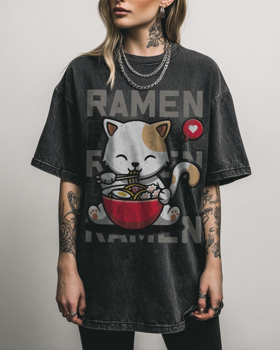 Are you a fan of cute cats, delicious ramen, and charming Japanese anime aesthetics? Indulge in the cuteness overload with our ‘Ramen Cat’ design! This adorable graphic features a kawaii cat happily enjoying a bowl of ramen noodles, blending beloved feline charm with the irresistible appeal of Japanese comfort food. A perfect treat for cat…