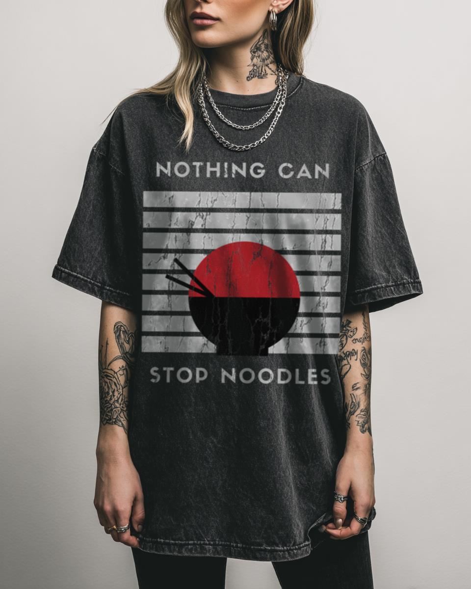 Why is “Nothing Can Stop Noodles” the Ultimate Funny Ramen T-Shirt? Declare your unstoppable love for Japanese cuisine with this hilarious “Nothing Can Stop Noodles” funny T-shirt. Featuring a kawaii graphic celebrating the mighty ramen, this black acidwash tee is perfect for any noodle enthusiast. Features of This Kawaii Foodie Tee: Witty Noodle Design: A…