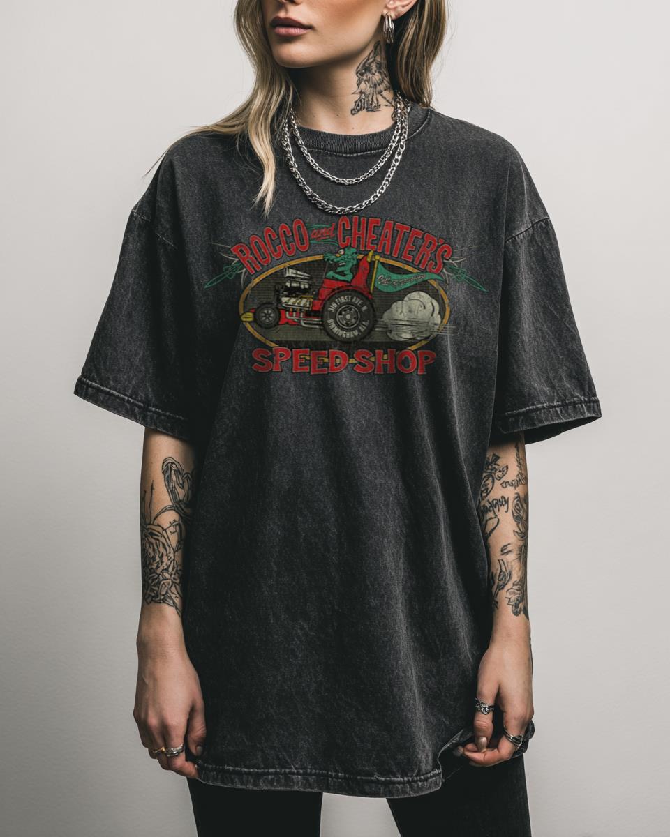 Calling all vintage racing fanatics and anime art collectors! Accelerate your wardrobe with this ‘Drag Racing Rocco & Cheaters Speed Shop 1944’ design. This piece beautifully merges the gritty charm of classic drag racing from 1944 with a playful anime twist, perfect for those who appreciate history, speed, and unique artistic styles. Why This Rocco…