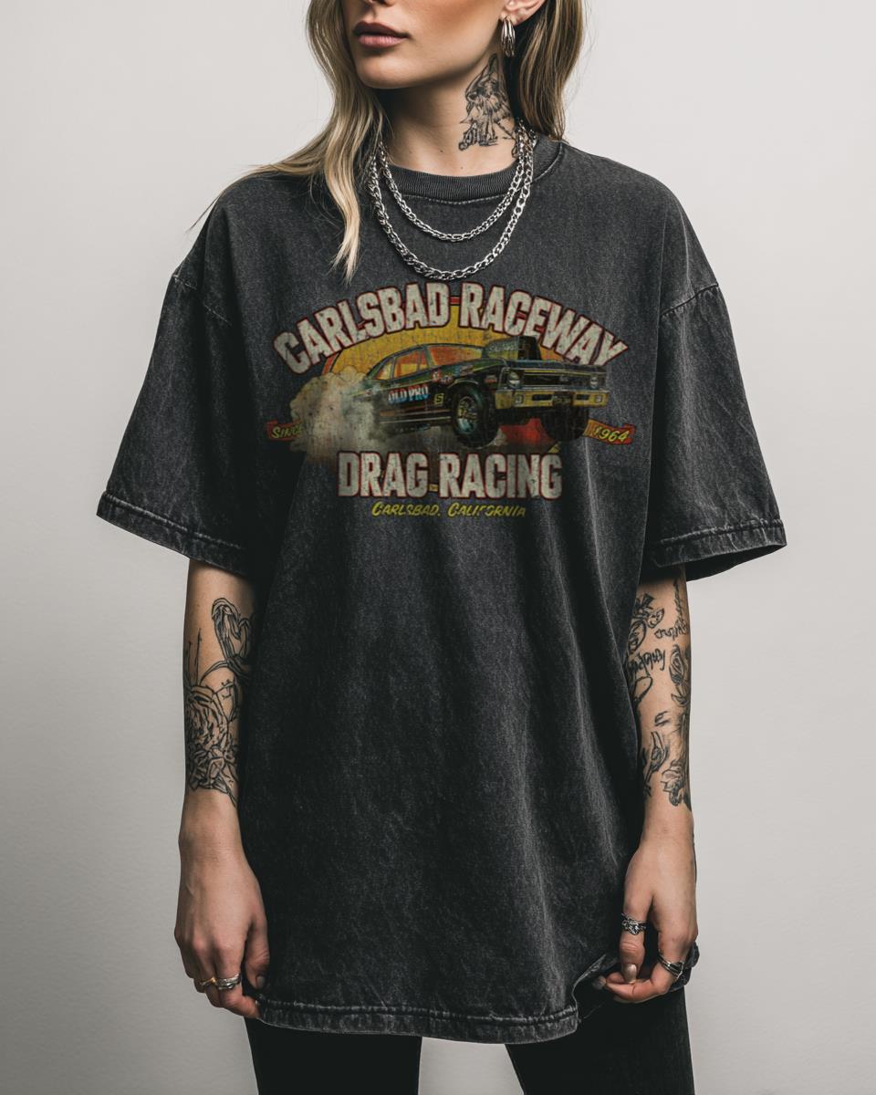 Remember the golden age of drag racing? Take a trip down memory lane with this ‘Drag Strip Carlsbad Raceway Drag Racing 1964’ design. This unique graphic blends the iconic imagery of a 1964 drag strip with a cool anime twist, perfect for vintage racing fans and those who love a touch of retro cool. Why…