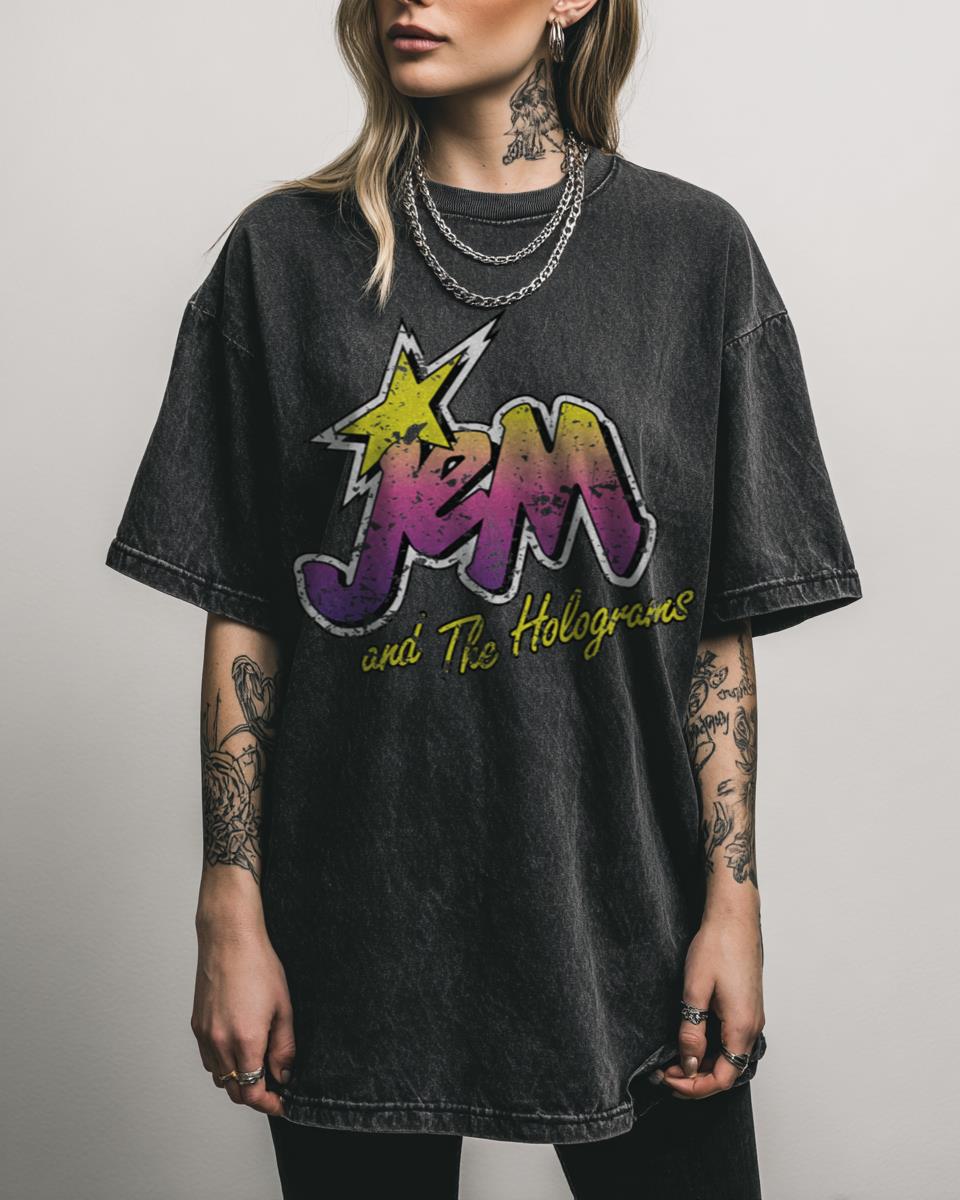 Get ready to rock out with true 80s glam! This t-shirt celebrates the truly outrageous Jem and the Holograms, showcasing the iconic band with a distressed retro vibe. It’s a perfect nostalgic piece for fans of 80s cartoons, music, and the rivalry with The Misfits, bringing back the magic of “Showtime, Synergy!” Why You’ll Love…
