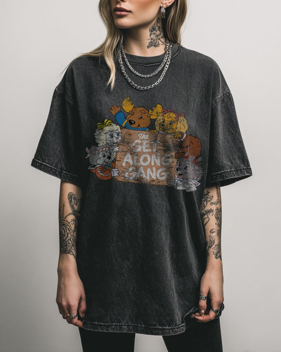 Relive Childhood Memories with This Vintage Get Along Gang T-Shirt? Step back into the 80s with this charming Vintage Get Along Gang T-Shirt! Featuring a retro graphic inspired by the beloved Saturday morning cartoon, this tee is perfect for any 80s kid who cherishes nostalgic memories. The unique black acidwash fabric adds to its authentic…