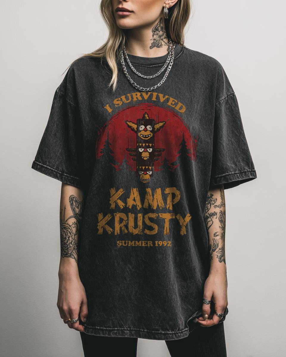 Did you make it out of Kamp Krusty alive, or just love classic Simpsons humor? Celebrate your resilience (or just your love for the iconic show) with this ‘I Survived Kamp Krusty’ graphic t-shirt! Featuring a nostalgic design inspired by The Simpsons’ unforgettable episode, it’s a must-have for any fan of Bart, Krusty, and the…