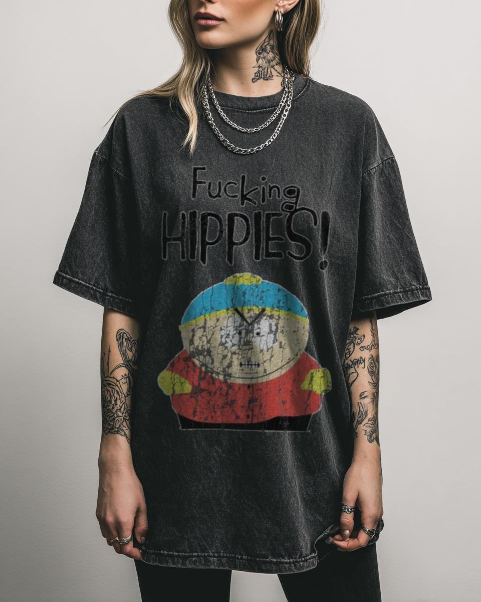 Why is This Eric Cartman ‘F**king Hippies!’ South Park T-Shirt a Fan Favorite? Embrace the irreverent humor of South Park with this **Eric Cartman acidwash t-shirt**, featuring his infamous “F**king Hippies!” quote. This graphic tee captures the iconic attitude of Eric Cartman, perfect for fans of adult animation and satirical comedy. The distinctive black acidwash…