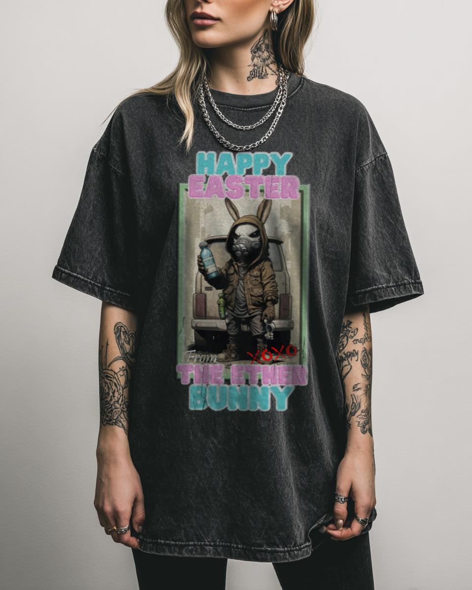 Looking for a darkly humorous twist on Easter? Unleash some twisted humor this Easter with our ‘Happy Easter from the Ether Bunny’ t-shirt. This funny and disturbing design is perfect for those who appreciate dark jokes and memes, offering a unique, edgy take on the traditional holiday icon. Why You’ll Love This: Unique printed graphics…