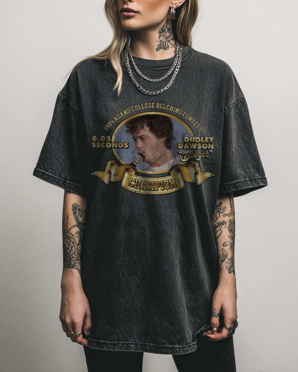 Why This Revenge of the Nerds Booger T-Shirt is a Comedy Classic? Relive the hilarious moments of the 80s cult classic with this Revenge of the Nerds Booger t-shirt, celebrating the infamous “Belching Champion.” This graphic tee is perfect for fans of vintage comedy films, Adams College, and the enduring legacy of Lambda Lambda Lambda….