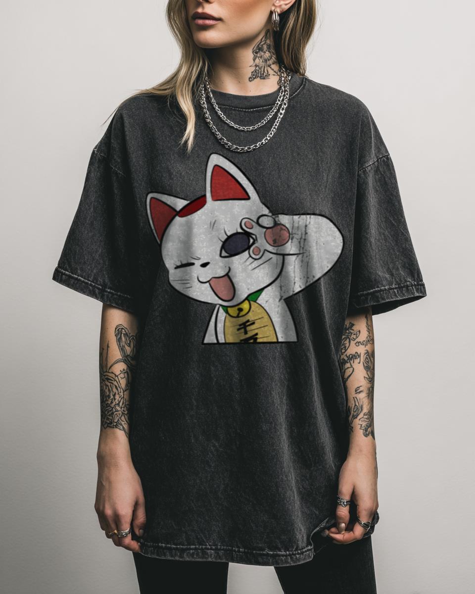 Ready for some supernatural antics with the legendary Turbo Granny from Dandadan? Join the bizarre adventures with this ‘Turbo Granny’ t-shirt, inspired by the hit anime and manga series Dandadan. This design features the iconic character, possibly in her cat form or with feline elements, perfect for fans of Okarun, Momo Ayase, and the unique…