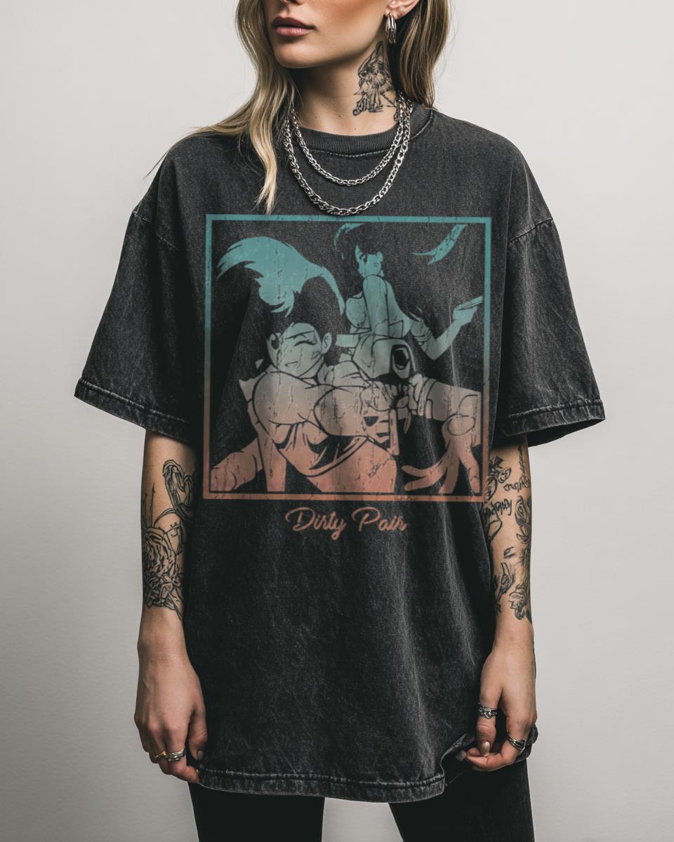 Relive the action-packed adventures of the Lovely Angels with this classic anime tee! Step back into the 80s with this ‘Dirty Pair’ graphic t-shirt, featuring the iconic sci-fi duo, Kei and Yuri. This design captures the vibrant, oldschool aesthetic of the classic Japanese anime series, making it a perfect tribute to the Lovely Angels. Ideal…