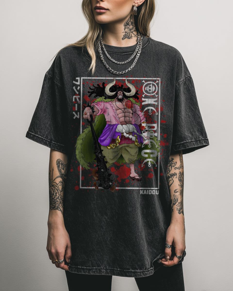 Are you a fan of the mighty Emperors of the Sea from One Piece? Conquer your day with this powerful ‘One Piece – Kaido’ t-shirt, featuring the King of the Beasts. This design captures the overwhelming strength and iconic presence of the Yonko, making it a formidable piece for any fan of the epic One…