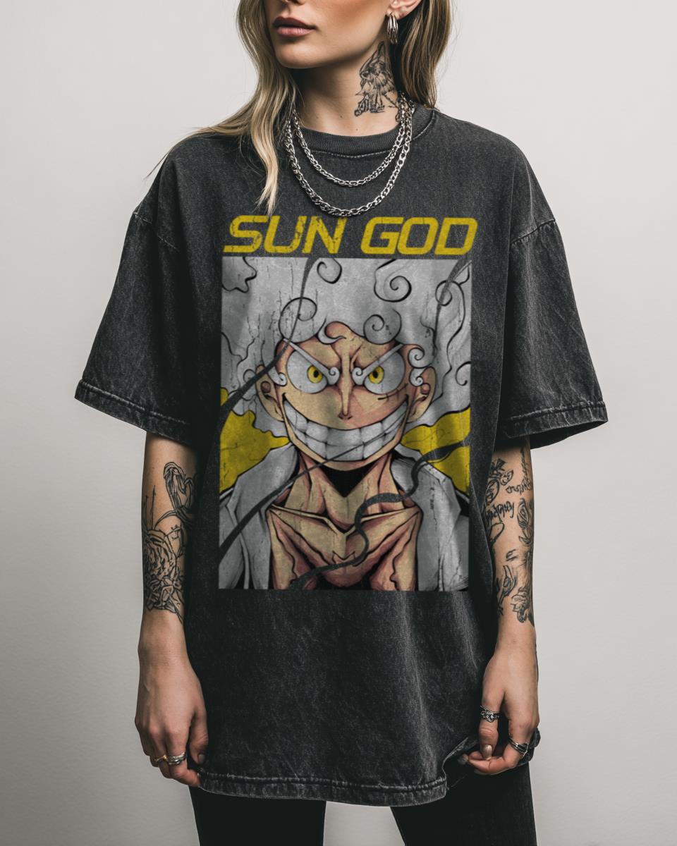 Are you ready to witness the dawn of a new era with Joy Boy and Sun God Nika? Unleash the power of the ‘Sun God Nika’ with this dynamic One Piece anime T-shirt, featuring Monkey D. Luffy in his awakened form. This design celebrates the exhilarating transformation and the legend of Joy Boy, perfect for…