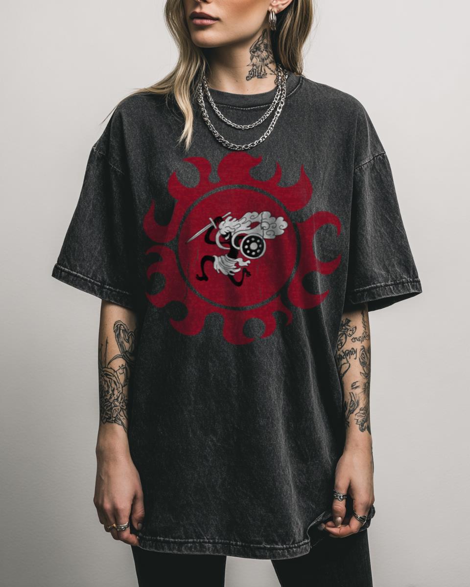 Are you ready to embrace the boundless joy of the Sun God Luffy? Celebrate the spirit of freedom and adventure with this ‘One Piece Sun God’ t-shirt, featuring a cute rendition of Luffy as Joyboy. This design captures the playful yet powerful essence of the Straw Hat Captain, making it a delightful piece for any…