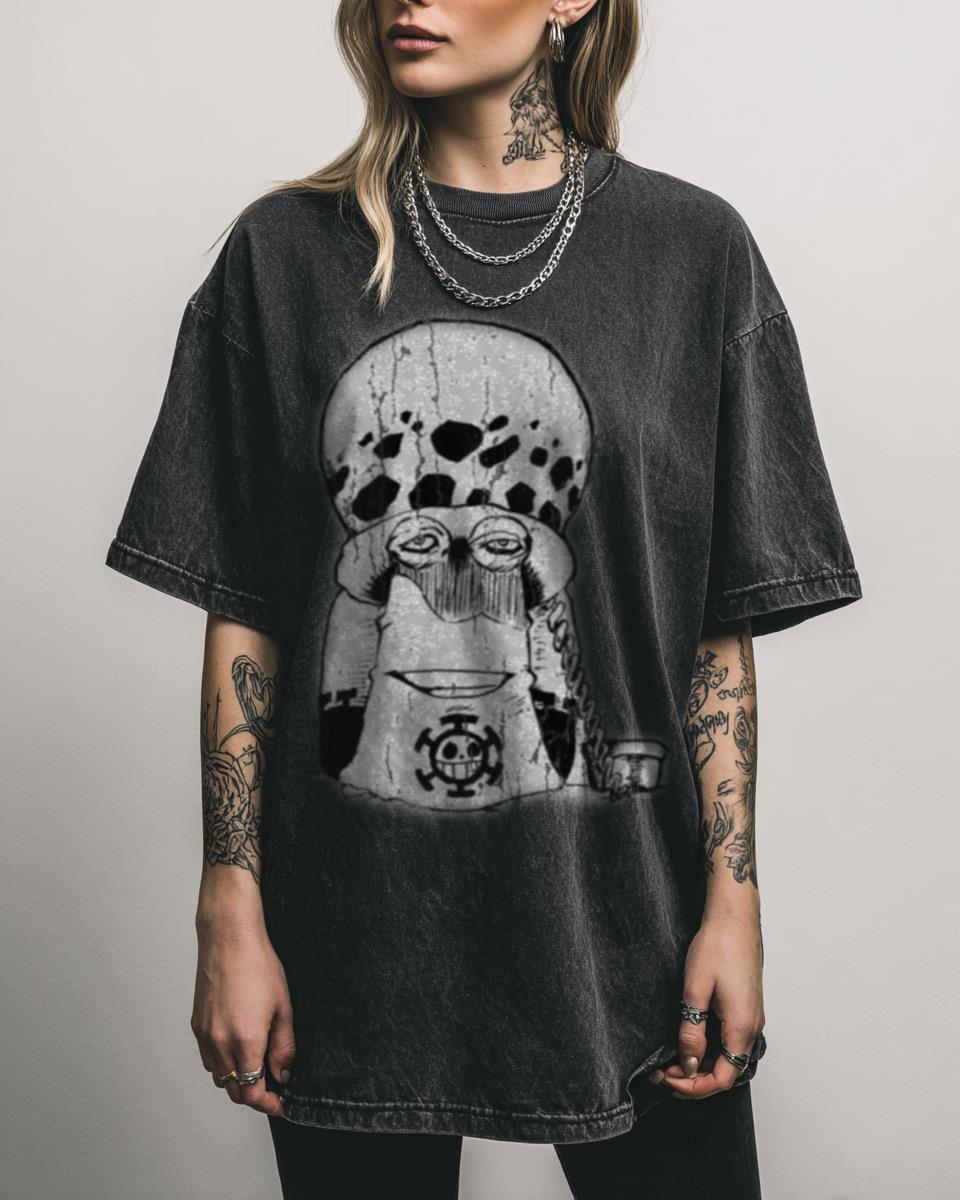 Are you a loyal member of the Heart Pirates, following the strategic genius of Trafalgar Law? Communicate your fandom with this unique “Trafalgar Law Den Den Mushi” graphic tee from One Piece! This design features Law’s distinctive snail phone, a quirky yet iconic communication device from the Grand Line. It’s a clever and subtle nod…