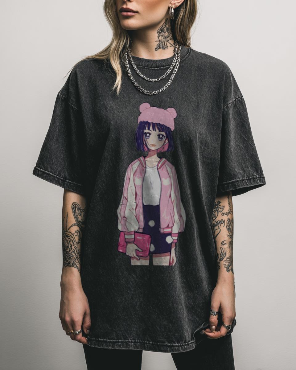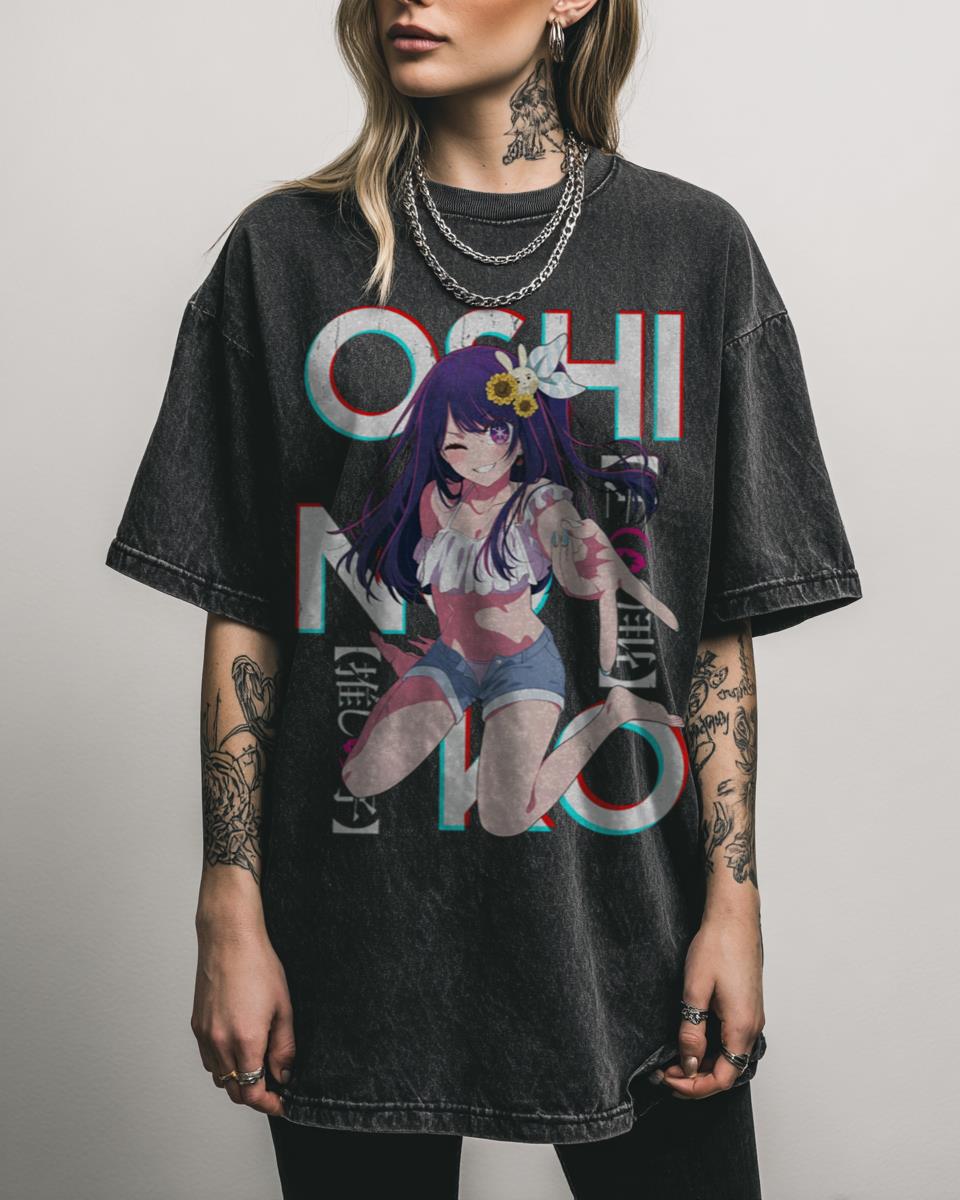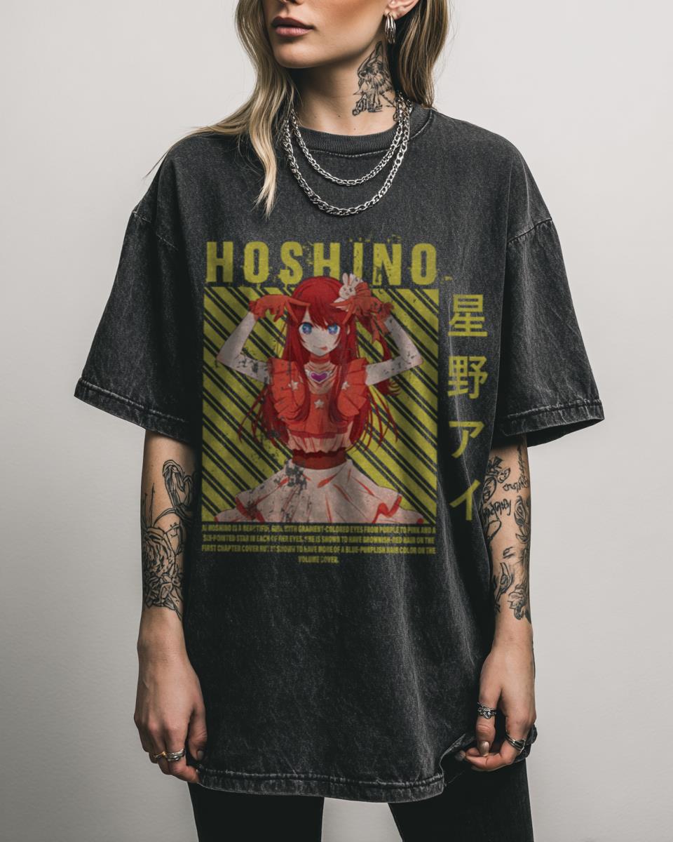 Why This Oshinoko Ai Hoshino Kawaii Tee is So Captivating? Express your devotion to the idol world with this Oshinoko Ai Hoshino Kawaii Anime Graphic Tee. This fan-created design beautifully highlights Ai Hoshino from the popular Oshi No Ko series, capturing her charming and iconic presence. Crafted from 100% cotton with a unique black acidwash…